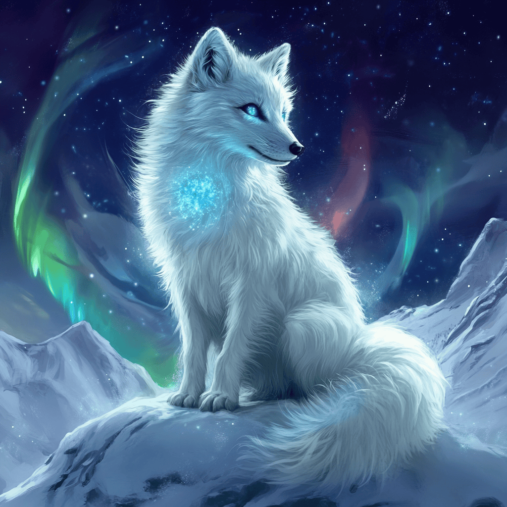 In the early days of the world, while the Earth lay under the Northern Lights, an ancient council of Great Northern Spirits gathered. Amid whispers mingling with icy winds and starry laughter, they created a magical being — a guardian for their cherished lands. Amidst a snowstorm sparkling like diamonds, Arktos emerged. His fur was untouched and radiant like moonlit snow, his presence glowing with an ethereal light. From that moment, Arktos became part of the Arctic realm, embodying its spirit. He was a messenger tasked with maintaining its delicate balance. His breath was the crisp wind sweeping over icy landscapes, and his heartbeat echoed the ancient rhythms of the Arctic wilderness.