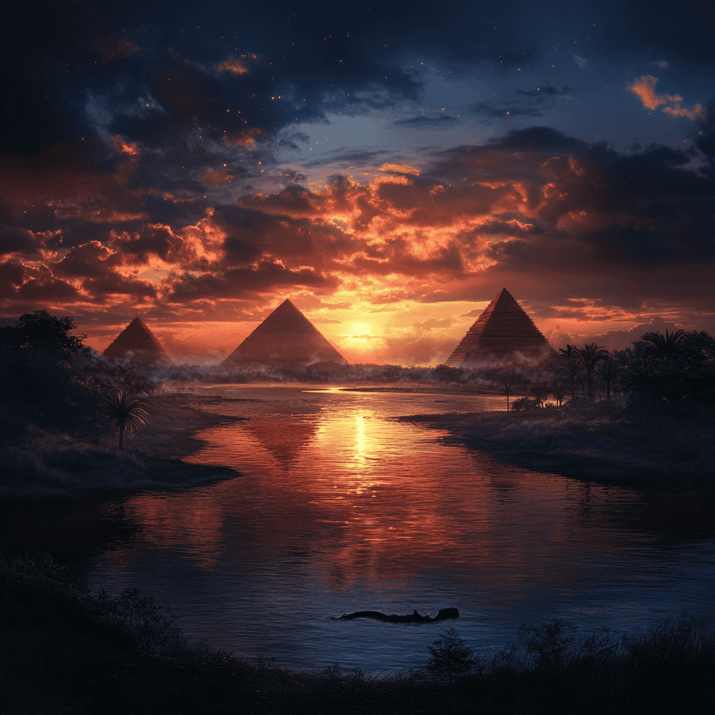 Long ago, as the earth began to take shape and the cosmos revealed its secrets, a vast desert stretched endlessly. Its sands glistened under the merciless sun, awaiting a miracle to turn them into legend. In this ancient land, the gods gathered, as powerful as thunder before a storm. They created a magical river, now known as the Majestic Nile. They gave it a gentle yet powerful spirit and purpose: to bring life to the dry sands and change the world’s destiny.