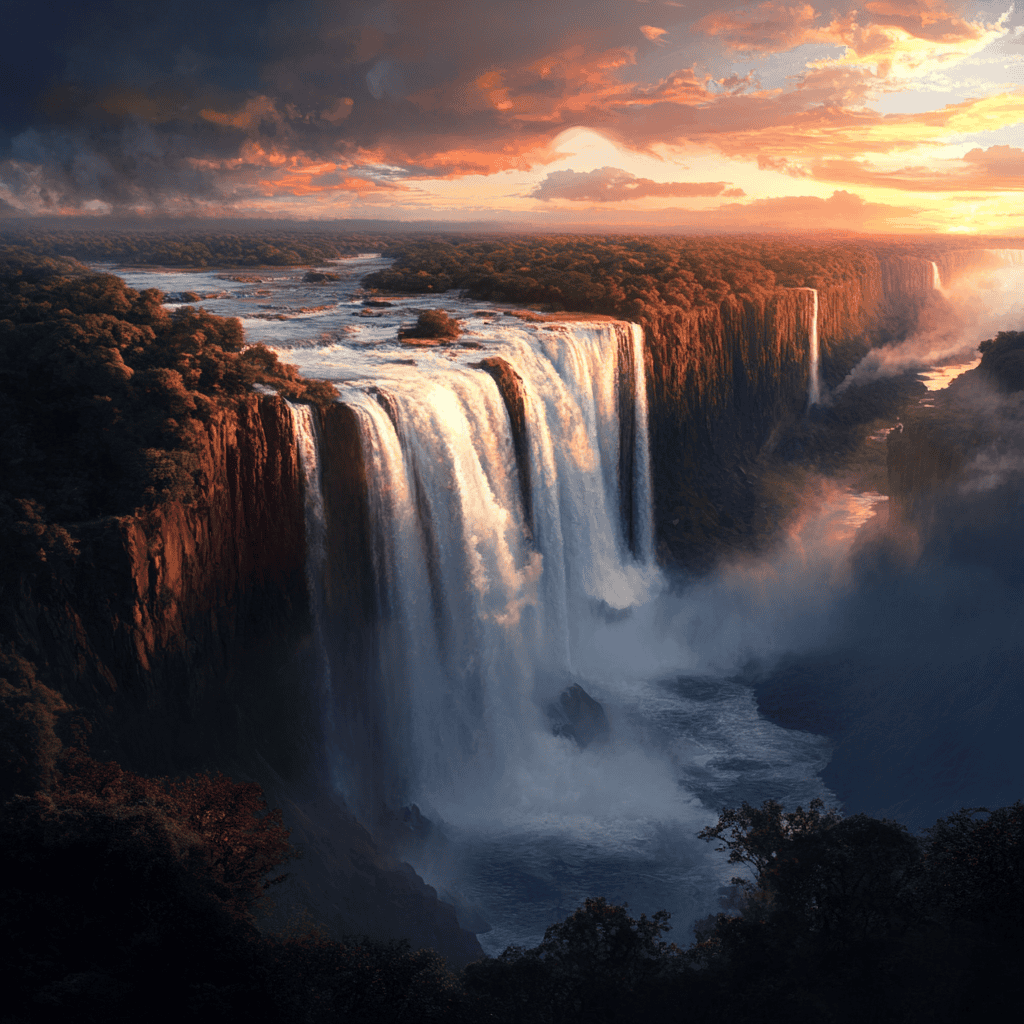 Today, Victoria Falls remains a sacred place, whispering ancient stories to those who seek. Visitors from around the world come to feel its enchanting embrace, hear its thunderous roar, and enjoy the rainbows over the misty gorge. At dawn, those who listen closely might hear Nyami-Nyami’s gentle whisper in the spray or feel the Tundasa’s tender touch in the breeze. The legend of Victoria Falls endures—a hymn to nature’s wonder and majesty, a timeless reminder to cherish the earth’s dance and the spirits who lovingly guard our harmonious coexistence…