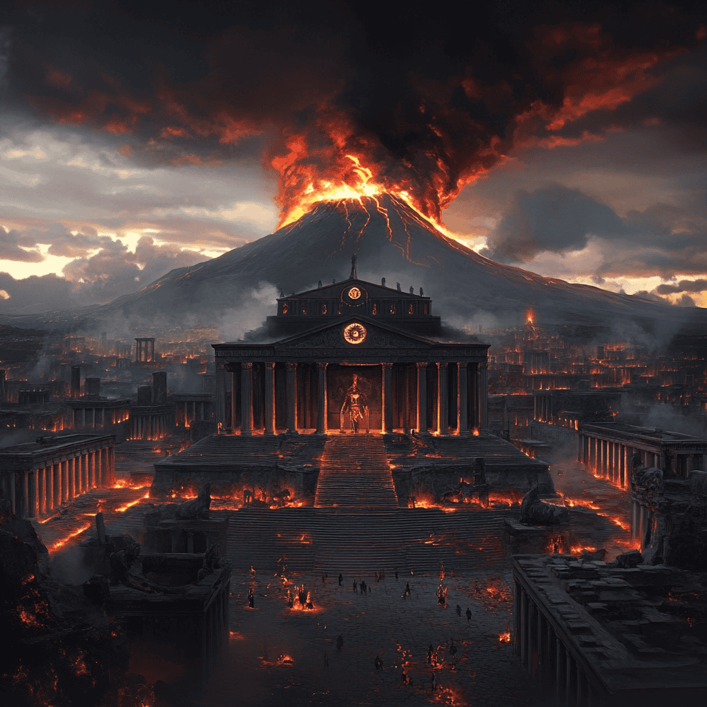 Yet beneath this splendor lay an unspoken truth, a secret prophecy known only to the Sybils — priestesses whose eyes pierced the veil of time. They spoke of a trial, a tumultuous fate wrapped in flames and shadow. “Beware, the sleeping giant dreams uneasily,” they warned. “When it stirs, the sky will burn, and the earth’s embrace will turn to darkness.” But the people, blinded by prosperity, dismissed these messages as mere folklore, unaware their lives were guided by fate’s unseen hand.