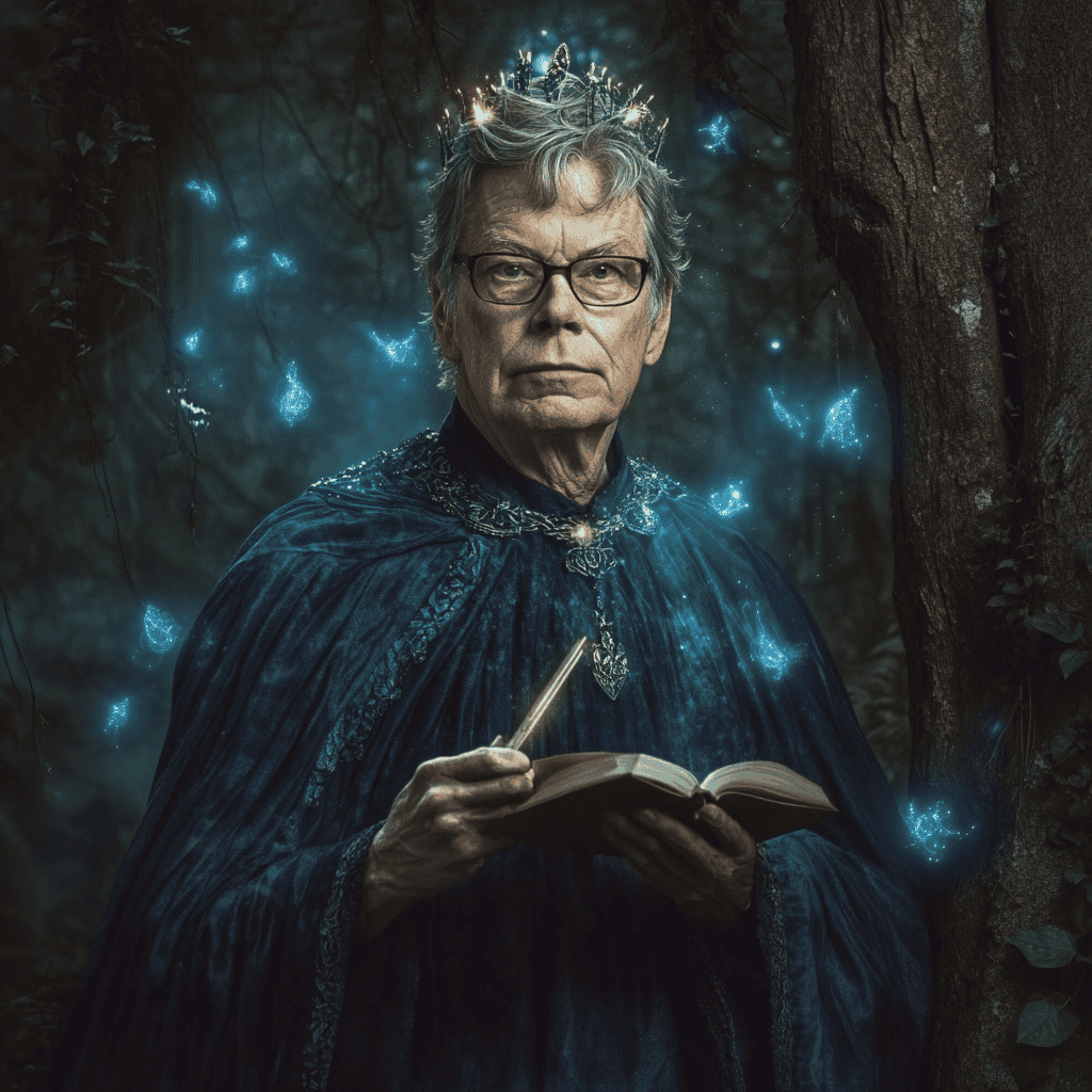 Illustration of Stephen King, a mythical realm inspired by Stephen King, central to folklore