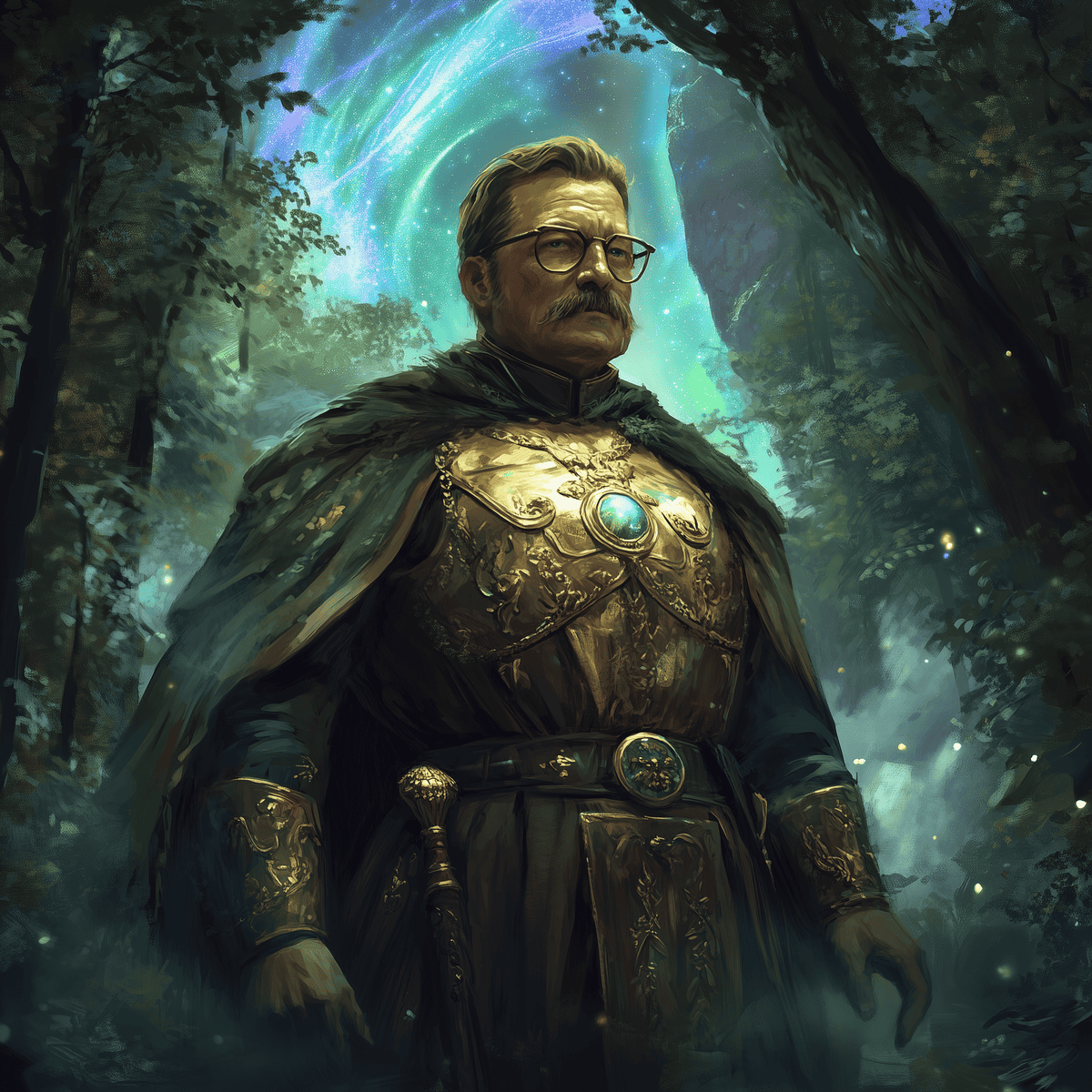 As Theodor grew, so did the legend surrounding him, expansive as the forests he cherished. His spirit burned with fearless zeal, and his determination was as comforting as the sun’s warmth after a storm. Tales quickly spread of Theodor confronting dark specters lurking at the edge of light, using his voice to dispel fears stirred by storms. As he walked, he bore the responsibility of protector, tasked with shielding his beloved realm from the creeping shadows of greed and despair.